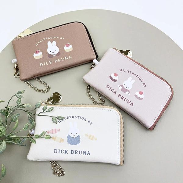 ミッフィーのフルーツ柄、キーパスポーチです♪大人女子のくすみカラーで、とってもキュート♪リール付でバッグに付けれる!キーフック3つと、ファスナー付ポケットも付いていて、小物の収納に◎