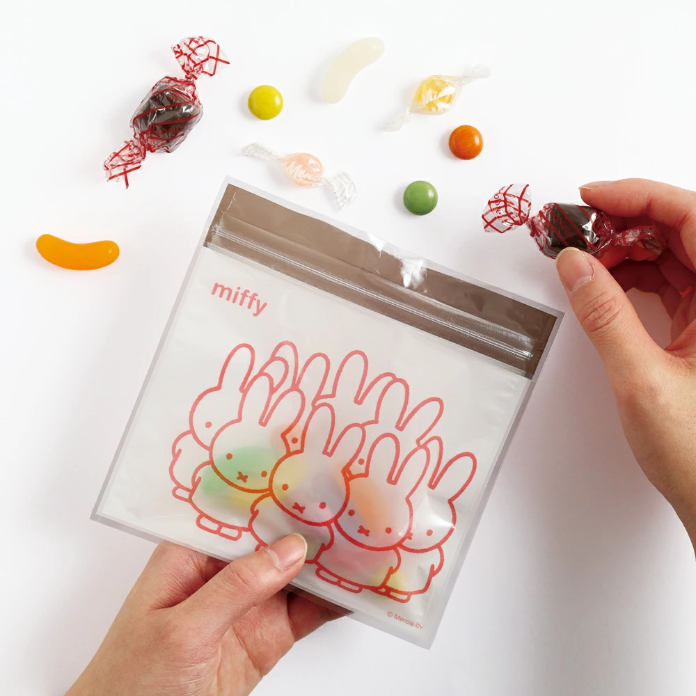 ミッフィーの可愛いデザインがクリアに写るジッパーバッグです。商品衛生法に基づく規格基準に適合しているので直接食品を入れることも可能◎お菓子のおすそわけや、文房具、小物の整理におすすめ♪