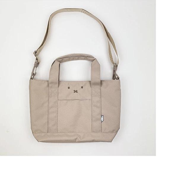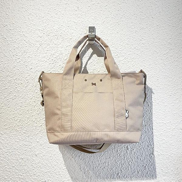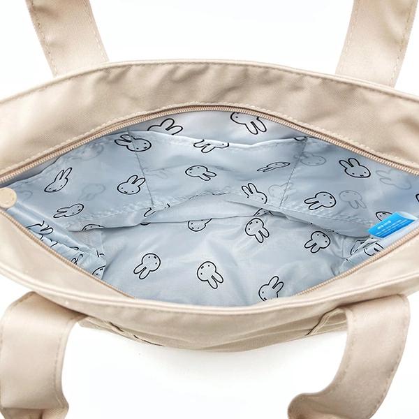 ミッフィーの横型トートバッグです。内側の生地にはミッフィーフェイスがデザインされていて可愛い☆外にポケットがあって使いやすさ◎ひょっこりミッフィーもいてキュート♪シンプルで使いやすいトートバッグです☆【容量:10L】