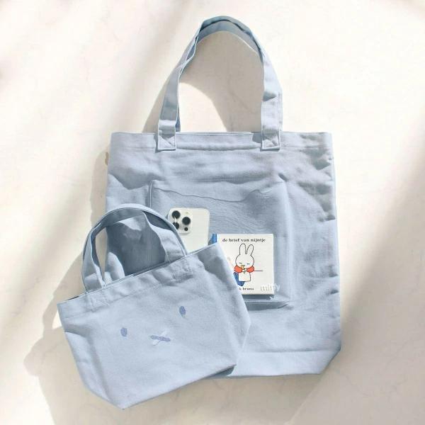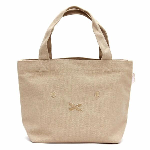コンビニやランチ休憩に行く際に財布やスマホなどちょっとした物をさっと入れて持ち歩くのに便利なサイズのミニトートバッグ♪お弁当と水筒が一緒に入る大きさ◎バッグ内側にはファスナー付きのクリアポケット付き◎デザインにもこだわりがあり、バッグ前面にはミッフィーのお顔が刺繍されており、バッグ側面にはひょっこりと覗くミッフィーがいますよ♪内ポケットのファスナートップがミッフィーのお顔の形なのも可愛い♪ 【容量:約4L】