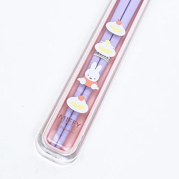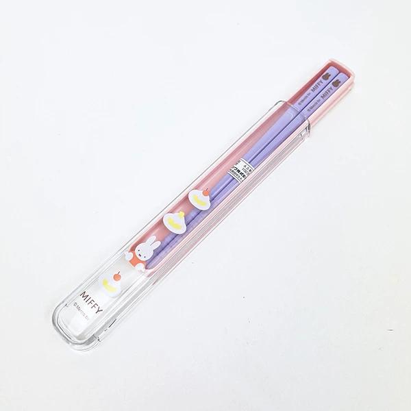 ドット柄にピンクとパープルカラーを組み合わせた女の子らしい可愛さが目を引く「ミッフィーとスイーツ」シリーズ。お箸とケースのセットは安心の日本製です♪食洗機乾燥機対応◎