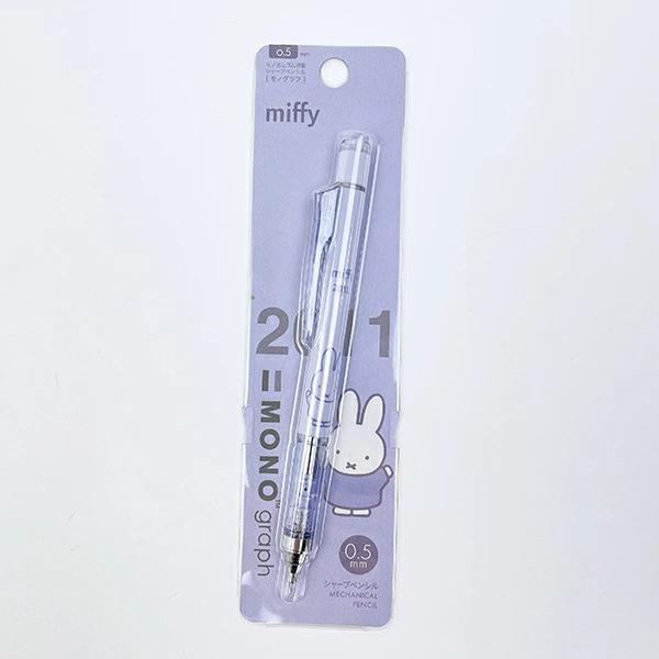 ミッフィーの回転くり出し式の「MONO消しゴム」を搭載したシャープペンシルです。ミッフィーは誕生70周年!年代別のミッフィーがそれぞれワンポイントに♪ミッフィーらしいシンプルなデザインで大人可愛いカラーリングなので、年代問わず持ちやすい☆お勉強やお仕事のお供に◎【芯径:0.5mm】