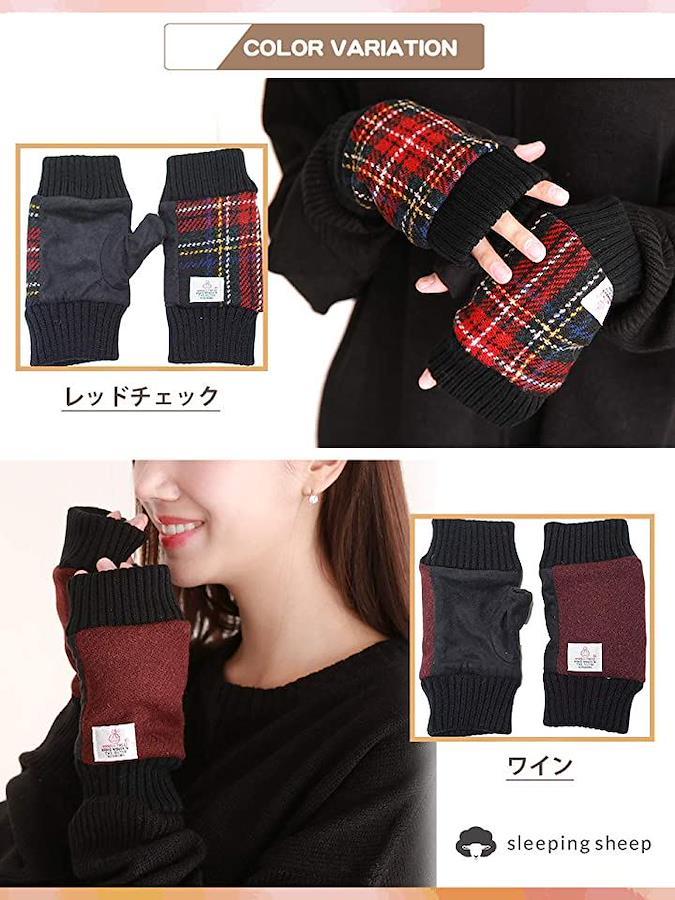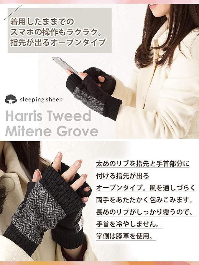 甲側はお洒落なハリスツイード生地指先フリー&裏ボア仕様でふわふわ、あったか手袋ケース入りなのでプレゼントにもお勧め