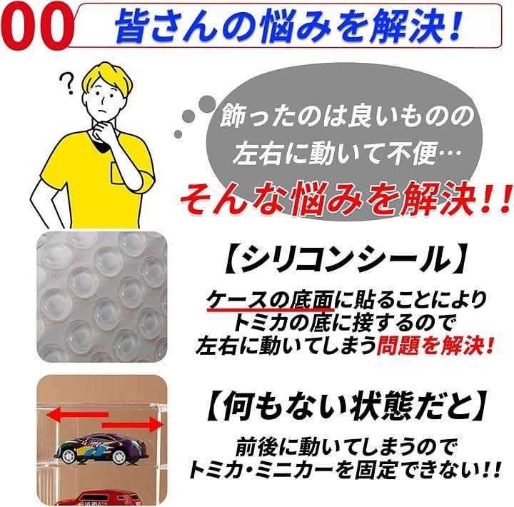「シリコンシール付きでトミカがズレない」 せっかく飾ったトミカが左右に動いてしまうストレスを解消。