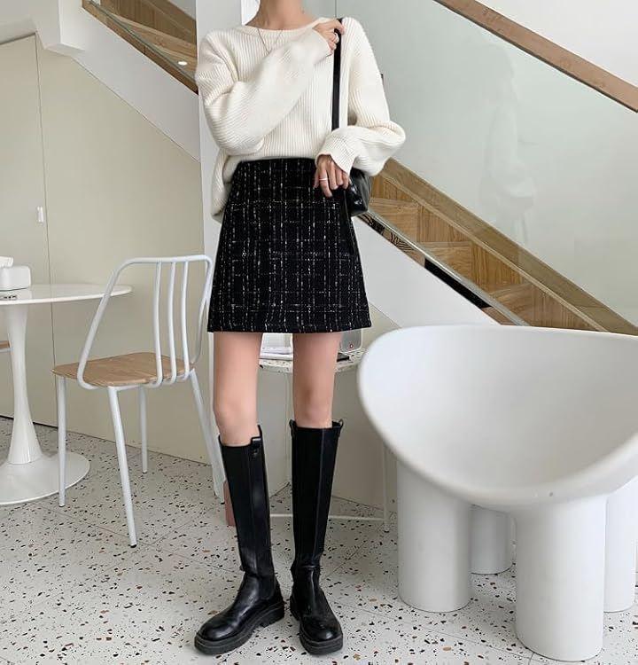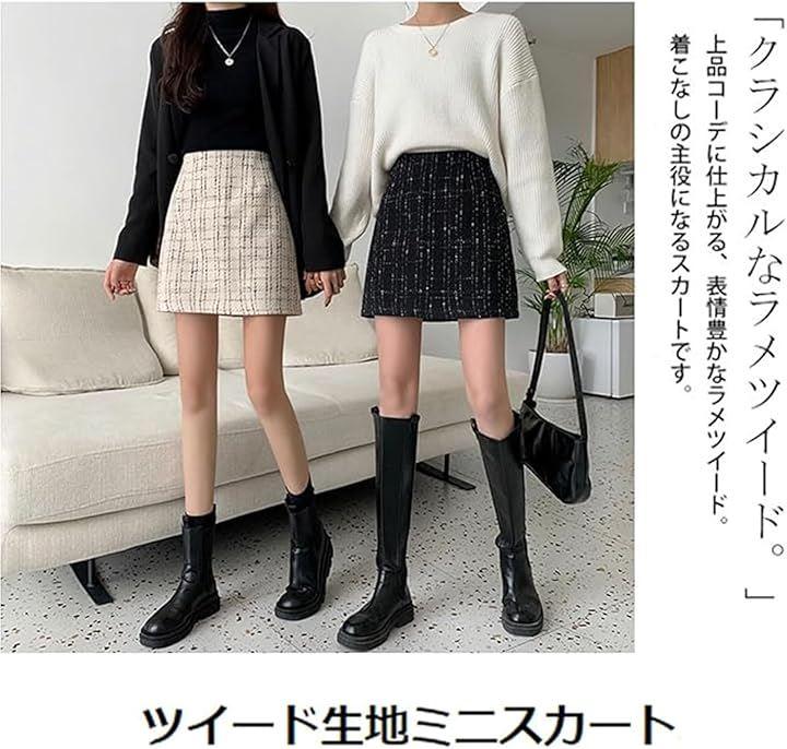 ラメ入りの糸がアクセントのツイード素材のミニスカートです