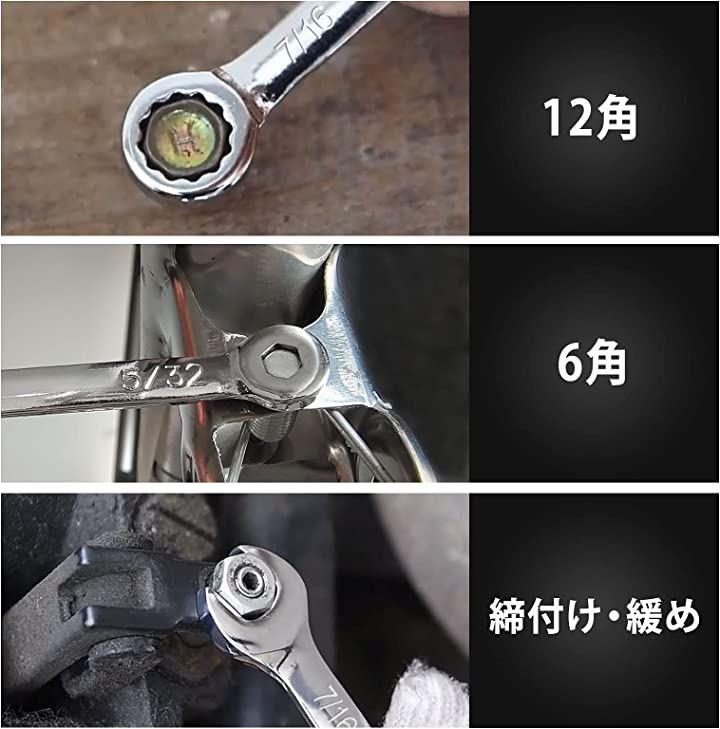 ・用途:小さな六角ボルト、ナットおよび四角止めねじの締付け、緩め作業に。