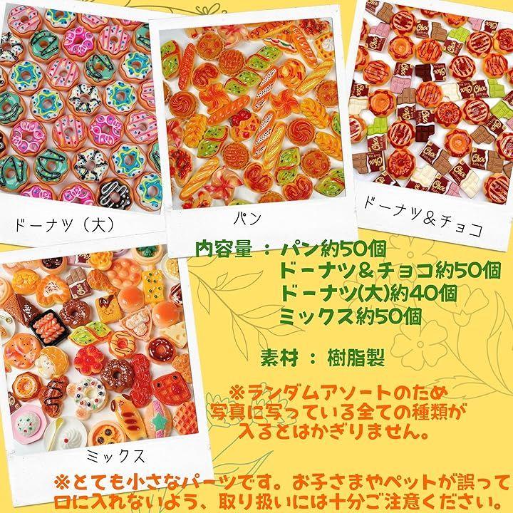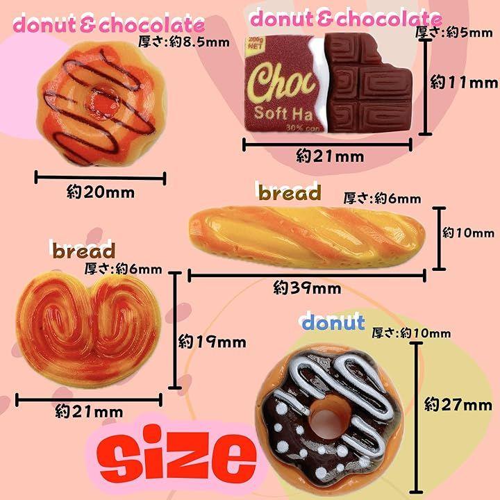 ドーナツ、パン、チョコなど、カラフルでかわいいミニチュアフードをたっぷり詰め合わせたセットです。