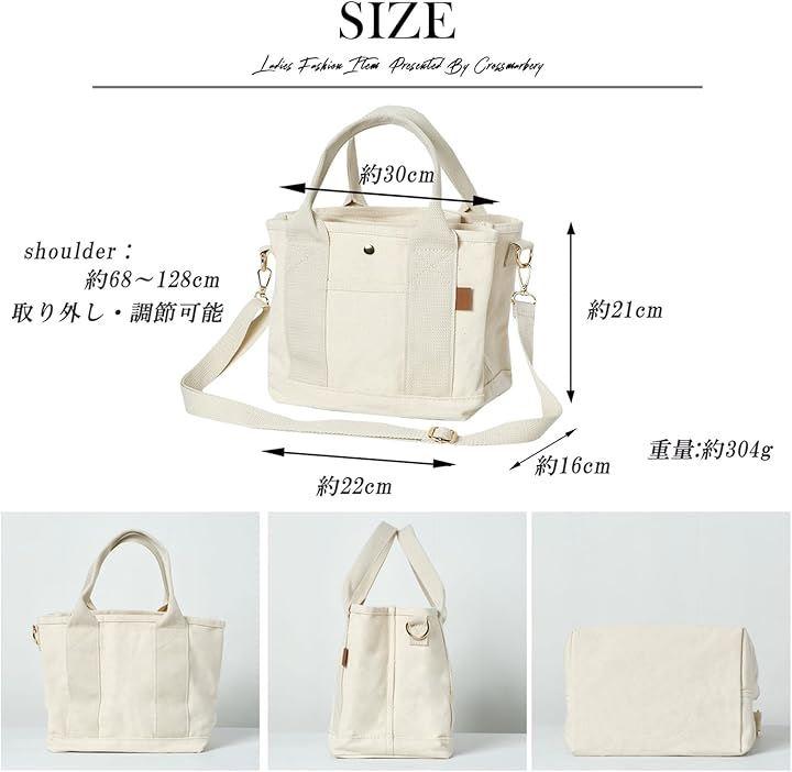 「素材」 キャンバス(コットン)、アクリルテープ「サイズ」 W:上30cm/下22cm H:21cm D:16cm ショルダー長さ:68~128cm「重量」 約304g