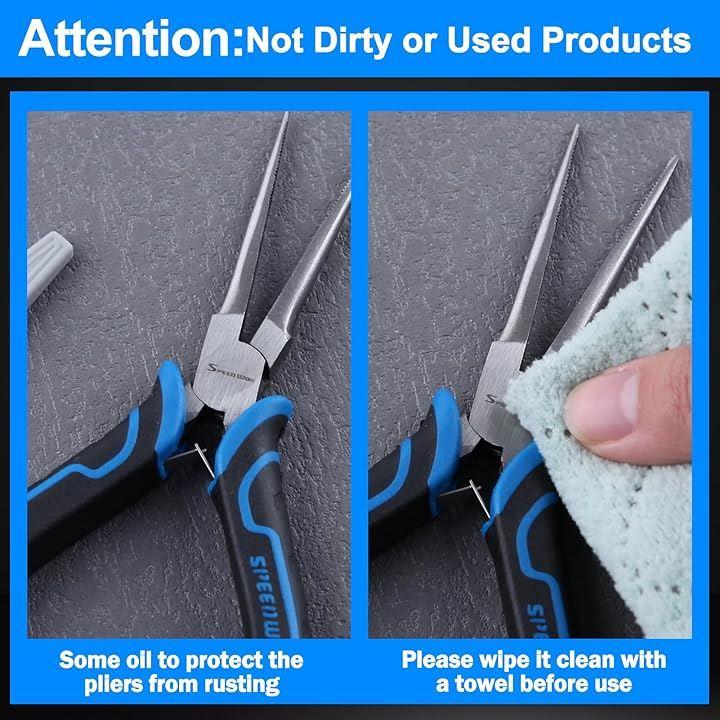 「用途」この先細ラジオペンチは細長く尖った顎で、細かいものを楽に掴んだり離したりすることができます。