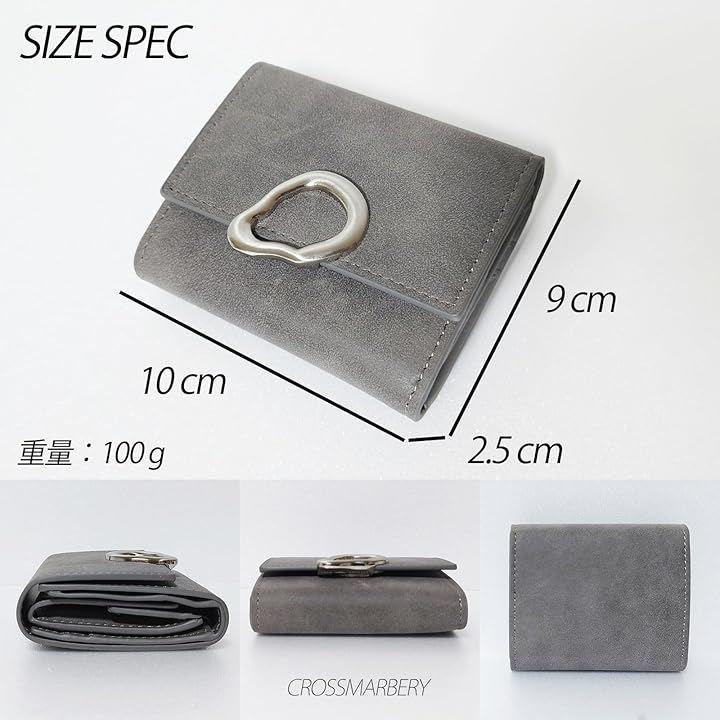 「素材」合成皮革 「仕様」開閉:スナップボタン、内側:小銭入れ(ボックスコイン)x1、カードポケットx7、札入れx1 「サイズ」横幅:10cm、高さ:9cm、マチ:2.5cm 「重さ」約100g