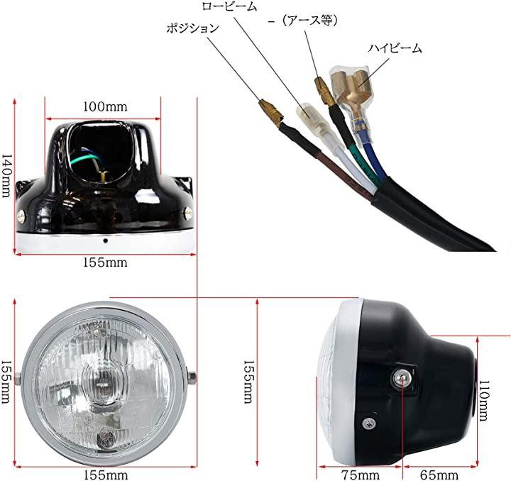 ヘッドライト取付ボルト間は155mmで多くの単車に対応し、取付ボルトもM8が付属されていま す。