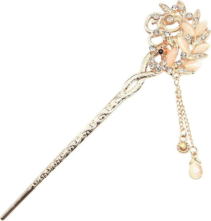 「孔雀デザインかんざし」くじゃくの羽根を広げたデザインの一本挿し簪は、人生に幸運を呼び込む、大切な家族を守るメッセージを与えてくれそうです。