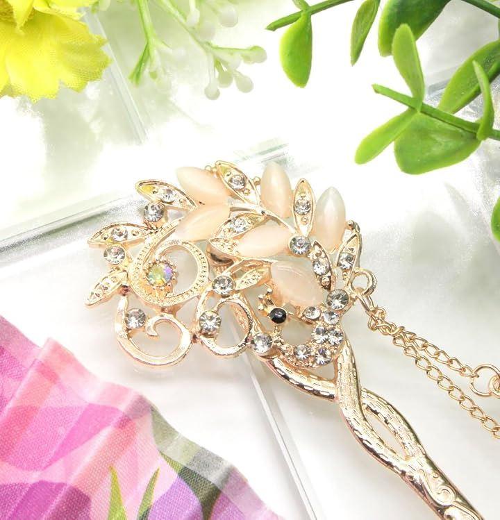 孔雀の羽の美しい色彩を表現しており、華やかさと優雅さを兼ね備えた女性のためのヘアアクセサリーです。