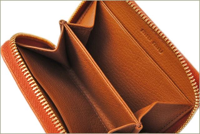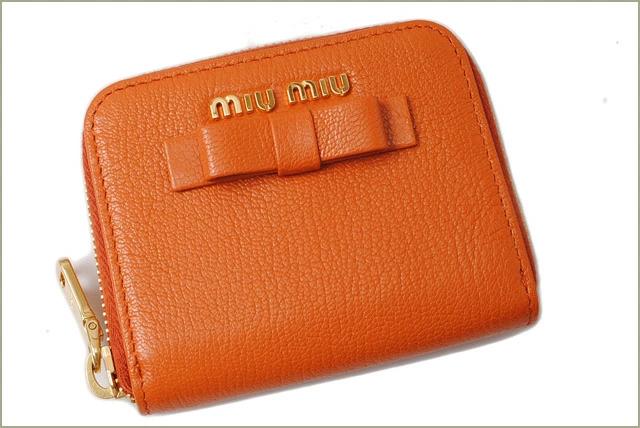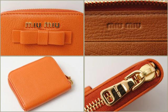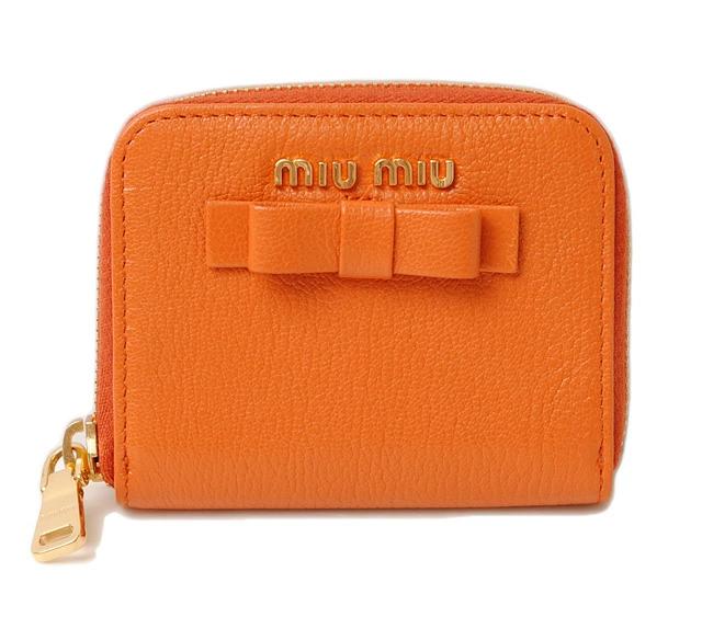 ミュウミュウ コインケース/カードケースmiumiu MADRAS/マドラスレザー PAPAYA/CUOIO パパイヤ 5MM268