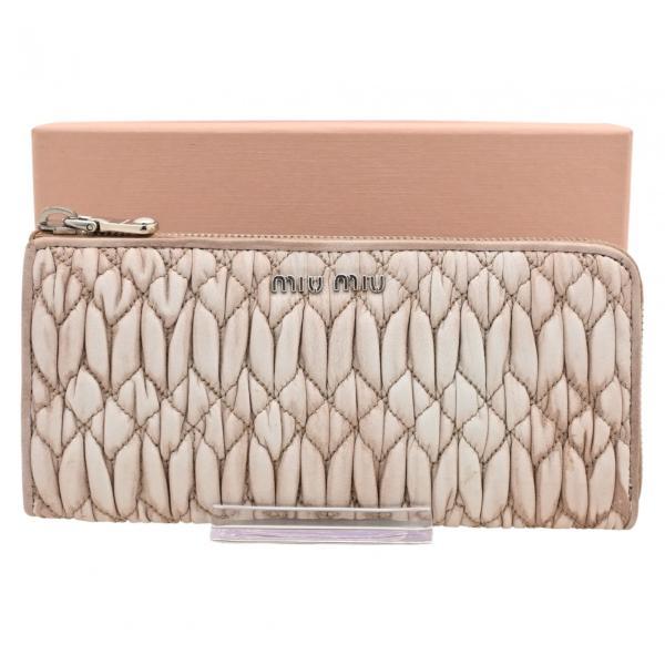 ミュウミュウ ロゴ マテラッセ長財布 ピンクベージュ レザーMiu Miu ロゴ L字ファスナーレディース プレゼント ギフト女性 贈り物 財布