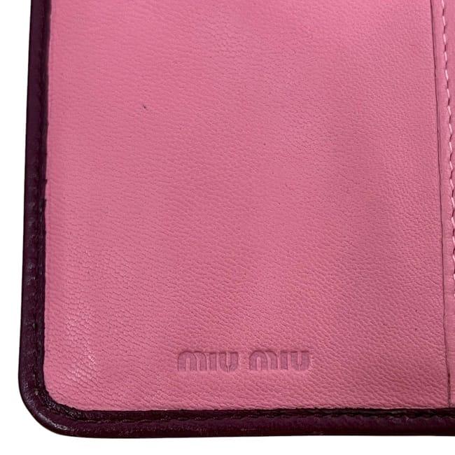 ☆---- 商品について ----☆ミュウミュウ 三つ折り 財布 ec-24293 ピンク ボルドー マテラッセ 5ML225 L字 ファスナー レザー 中古 197A miu miu ロゴ 金具 ホック メンズ レディース 定番 人気 男女兼用 シンプル シルバー金具 バイカラー ヴィンテージ 黒 ブランド 本物 鑑定済み
