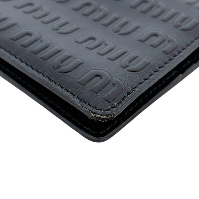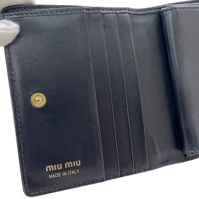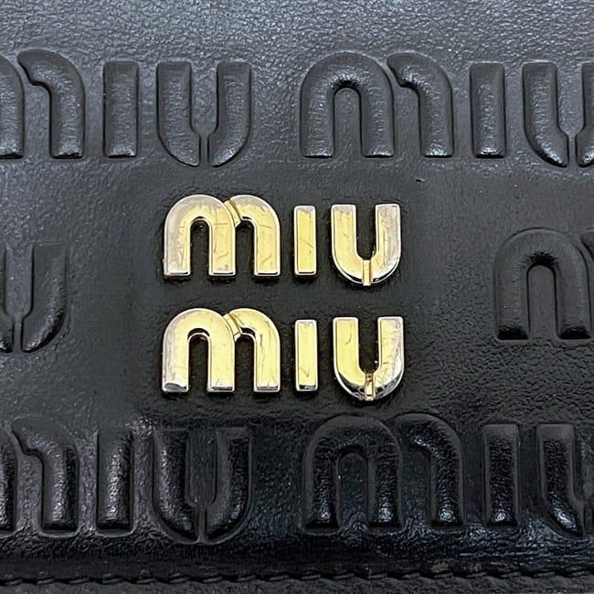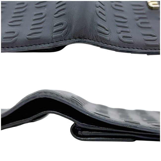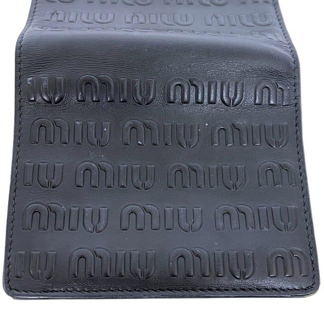 ☆---- 商品について ----☆ミュウミュウ 三つ折り 財布 ec-24571 ブラック 5MV204 エンボスロゴ レザー 中古 262 miu miu ロゴ 黒 総柄 ホック コンパクト 折り財布 レディース メンズ 男女兼用 シンプル コンパクト 定番 人気 エンボスロゴ ゴールド金具 ブランド 本物 鑑定済み