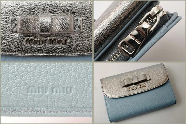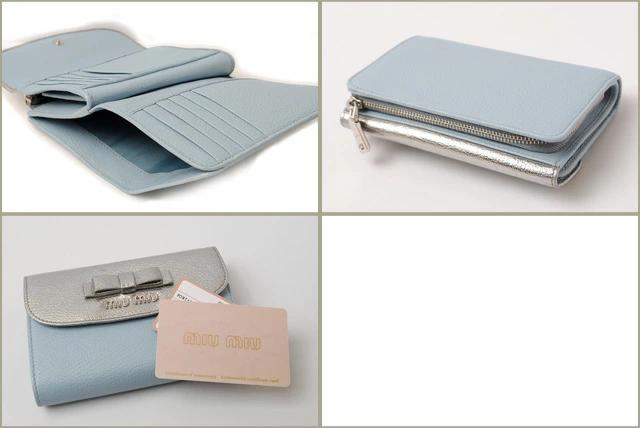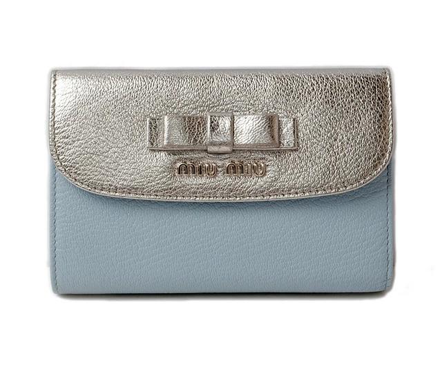 miumiu 3折財布 5M1225 MADRAS/マドラスレザー CROMO/CIELO シルバー/ライトブルー
