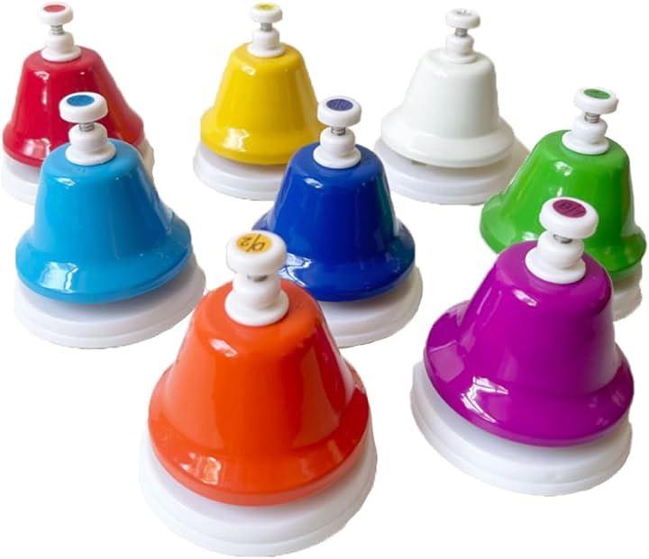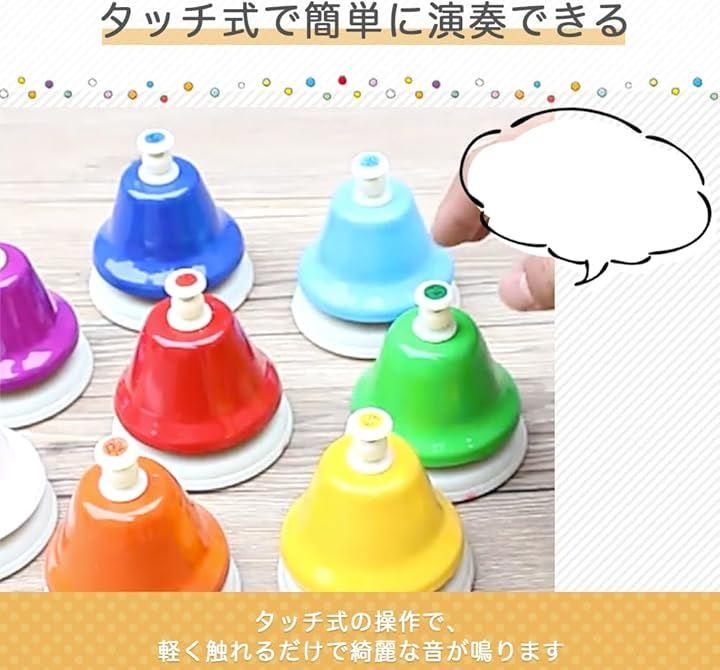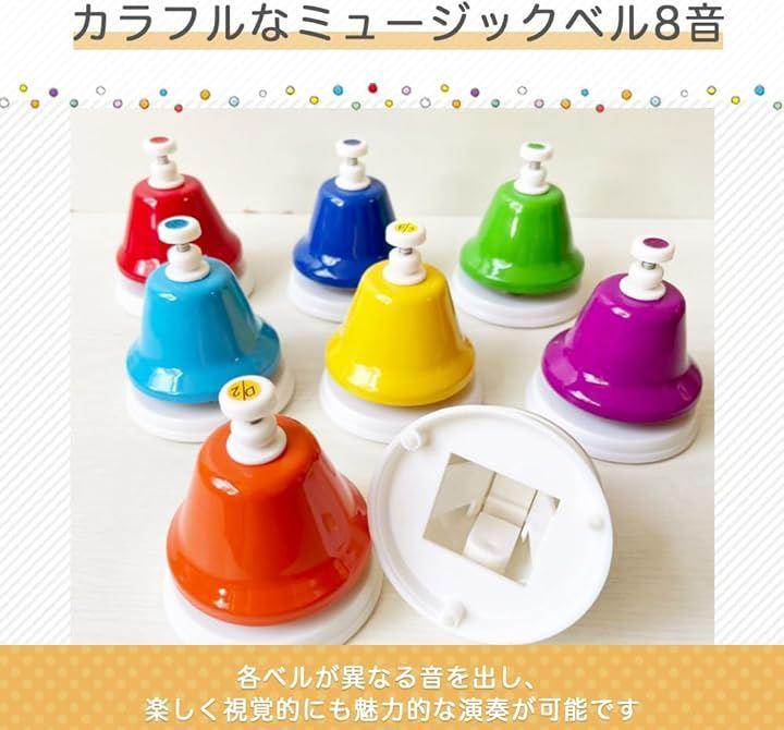 「カラフルなミュージックベル8音セット」鮮やかな8色のミュージックベルセット。