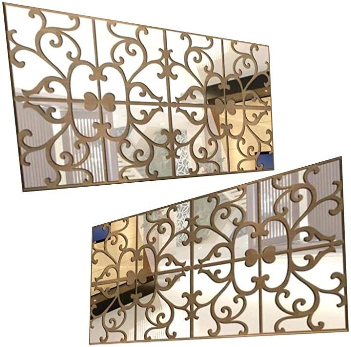・貼って剥がせるおしゃれな唐草文のアクリールミラーウォール(シールバー)です。