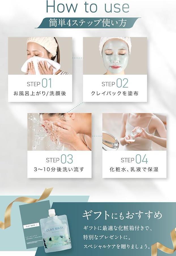 濡れた顔にも使用可能、3分で効果を実感いただけるクレイマスクです。