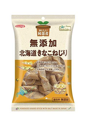 懐かしいけど新しい、今感じる北海道の魅力。 日本で約5%しかない、国産の大豆。 貴重な大豆の最大の産地である北海道産のものを使いました。 オホーツクの塩や砂糖大根糖も北海道産です。 北海道で腕を磨いた職人が、思いを込めながら、手作業でこねたり、ひねったりして作っています。 機械には出せない職人の味があります。 他ではできません。 大量生産もできません。 オホーツクの塩が効いた、食べて納得のきなこねじりです。 チャック付きなので、一度に食べきる必要はありません。