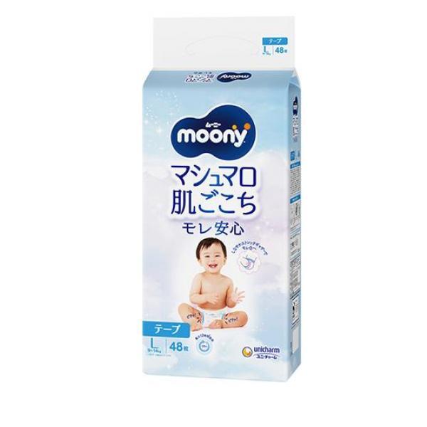 製品の特徴●moony ムーニー マシュマロ肌ごこちモレ安心●テープ●Lサイズ(適応体重:9kg~14kg)●背中と足まわりのゆるうんちストッパーでモレ0ゼロへ。●背中と足まわりにピタッと沿ってすきまをつくらない!大量のゆるうんちをせき止めます。●無添加(※)弱酸性トップシートを採用。※石油由来油剤・香料・ラテックス・合成着色料の4つの成分が無添加。●赤ちゃん用紙おむつ