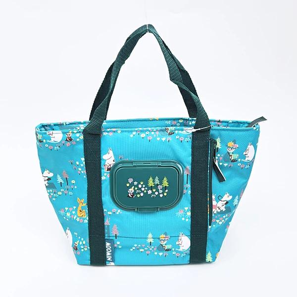 バッグの外側に携帯用のウェットティッシュをセットできるポケット付き♪手が汚れている時でも簡単に取り出せて便利です。ランチバッグの他におでかけやお散歩にもおすすめアイテムです♪