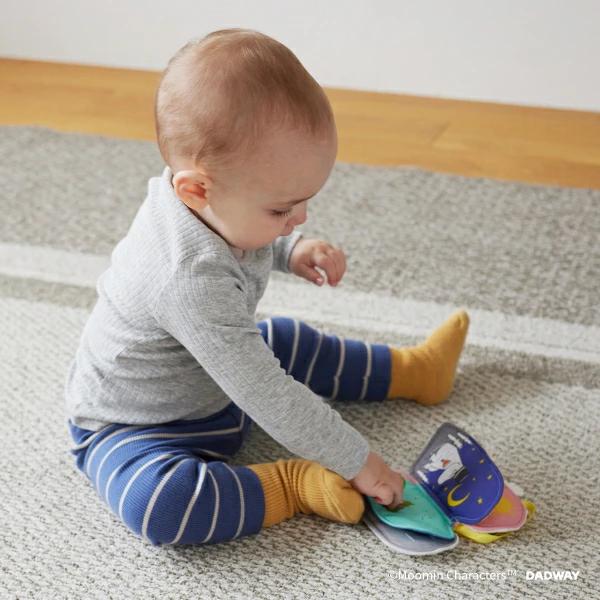 ニョロニョロの形のふわふわ布えほん。ムーミンやなかまたちと楽しく時間や天気のお話をしましょう。カラフルな色使いが楽しく、赤ちゃんがよろこぶカシャカシャ音♪お出かけに便利なストラップ付きです。