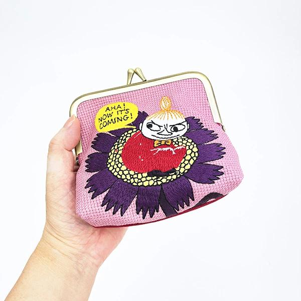 リトルミイの畳刺繍ミニポーチです。小さめのかわいいミニがま口タイプ♪こまごました持ち物を収納するのに便利☆ポケットティッシュやカード類が収納できるサイズ感なので便利に使えます☆