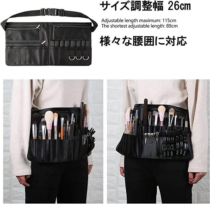 腰巻きエプロンタイプのメイクバッグで、ベルト調整は26cm幅可能となっており様々な腰囲に適応することができます。