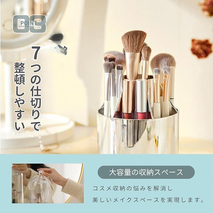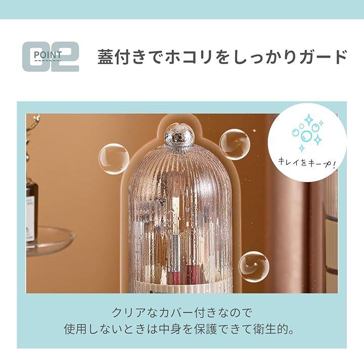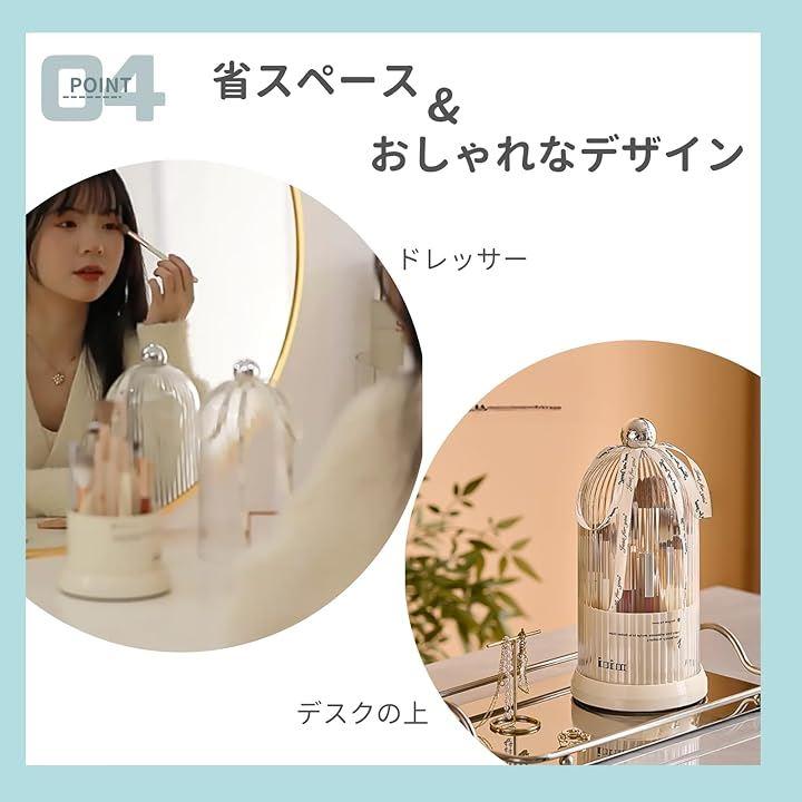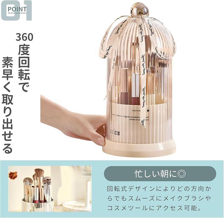 「360度回転で素早く取り出せる」回転式デザインにより、どの方向からでもスムーズにメイクブラシやコスメツールにアクセス可能。