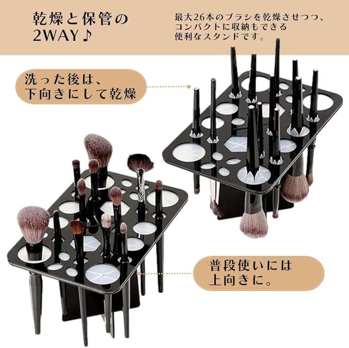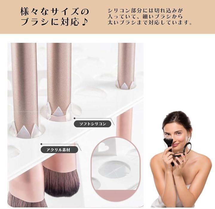 「 洗浄後のメイクブラシ乾燥に 」 ブラシを洗った後、コンパクトにキレイに干すことのできる便利な収納スタンドです。