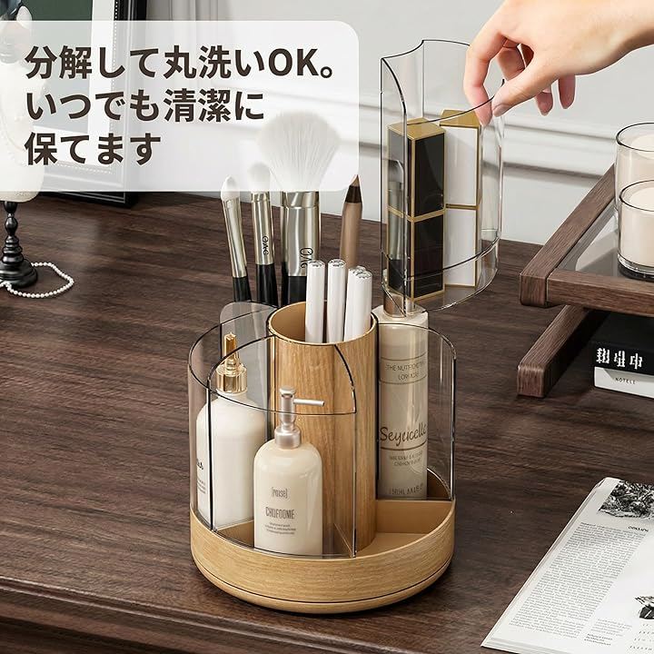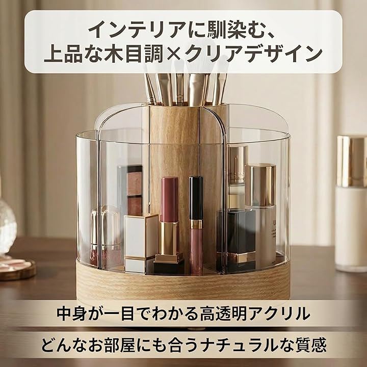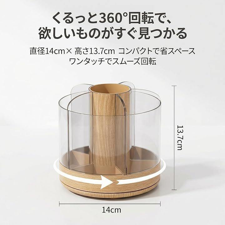 「360度回転で時短メイク」 くるっと回すだけで欲しいコスメがすぐ手に取れる回転式スタンド。