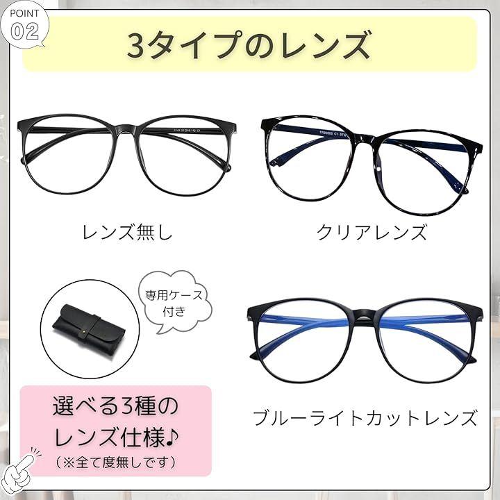 レンズはクリアタイプ、ブルーライトカットタイプ、またはレンズなしの3種類から選択可能。