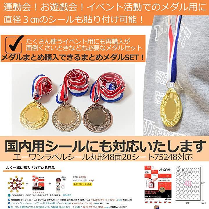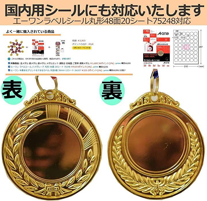 ・サイズ:直径5cm ・シールなどはる場所内径3cm ・ひものコード長さ80cm ・重さ20g ・セット数 銅メダルx30個
