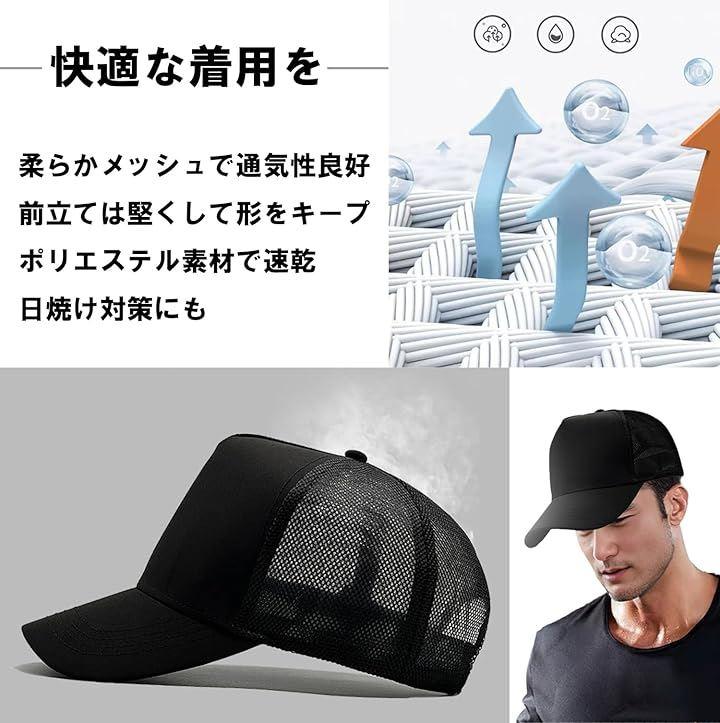 かぶり心地が深めに作られた、シルエットが綺麗な無地のメンズ用メッシュキャップ。