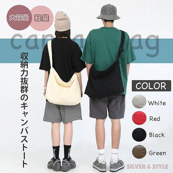 ▶商品:斜め掛けワンショルダーバッグ ▶対象:ユニセックス(メンズ・レディース) ▶材質:表面/帆布、キャンバス ▶サイズ:39cmx33cmx17cm / ストラップ紐幅:4.5cm ▶カラー:ブラック、ホワイト、グリーン、レッド ▶収納力:大容量 ▶デザイン:無地