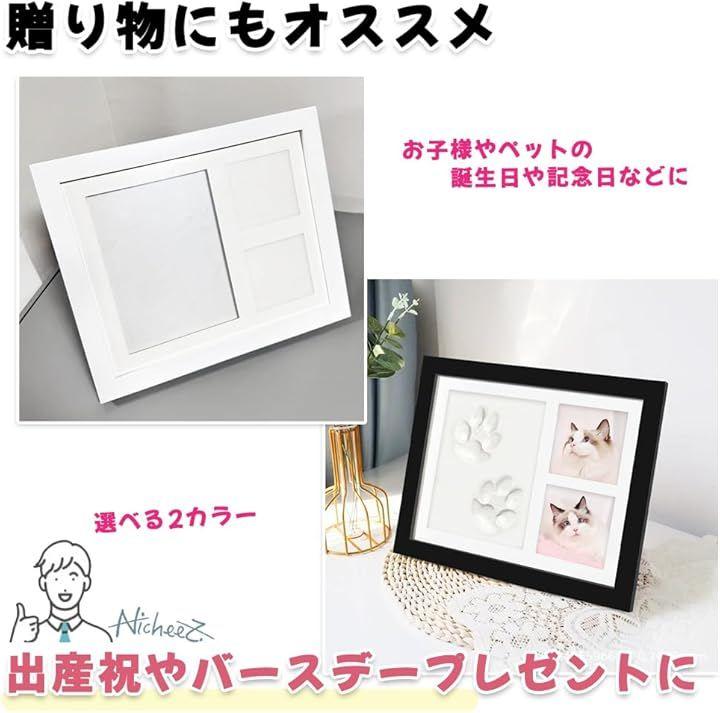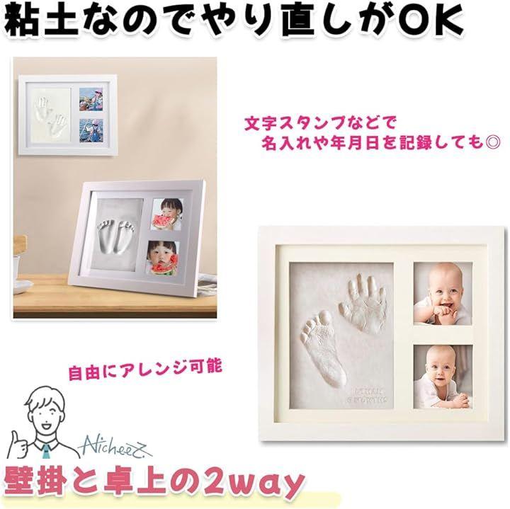 「商品内容」 手足型取り付きフォトフレーム カラー:ホワイト/ブラック 本体サイズ:縦/約23.5cm 横/約27.9cm 手足型部分サイズ:縦/約15.2cm 横/約11.5cm (フォト部分/1枚)縦/約6.8cm 横/約6.8cm *粘土は水などで揉んで少し伸ばしてからお使いいただくとキレイに型取りができます