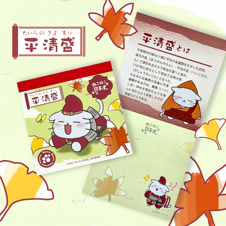 かわいい「ねこねこ日本史」平清盛のキャラクターが印刷された