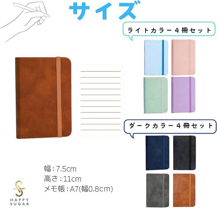 「商品詳細」横:7.5cm 縦:11cm メモ帳:A7 幅(0.8cm) 内容:4冊セット