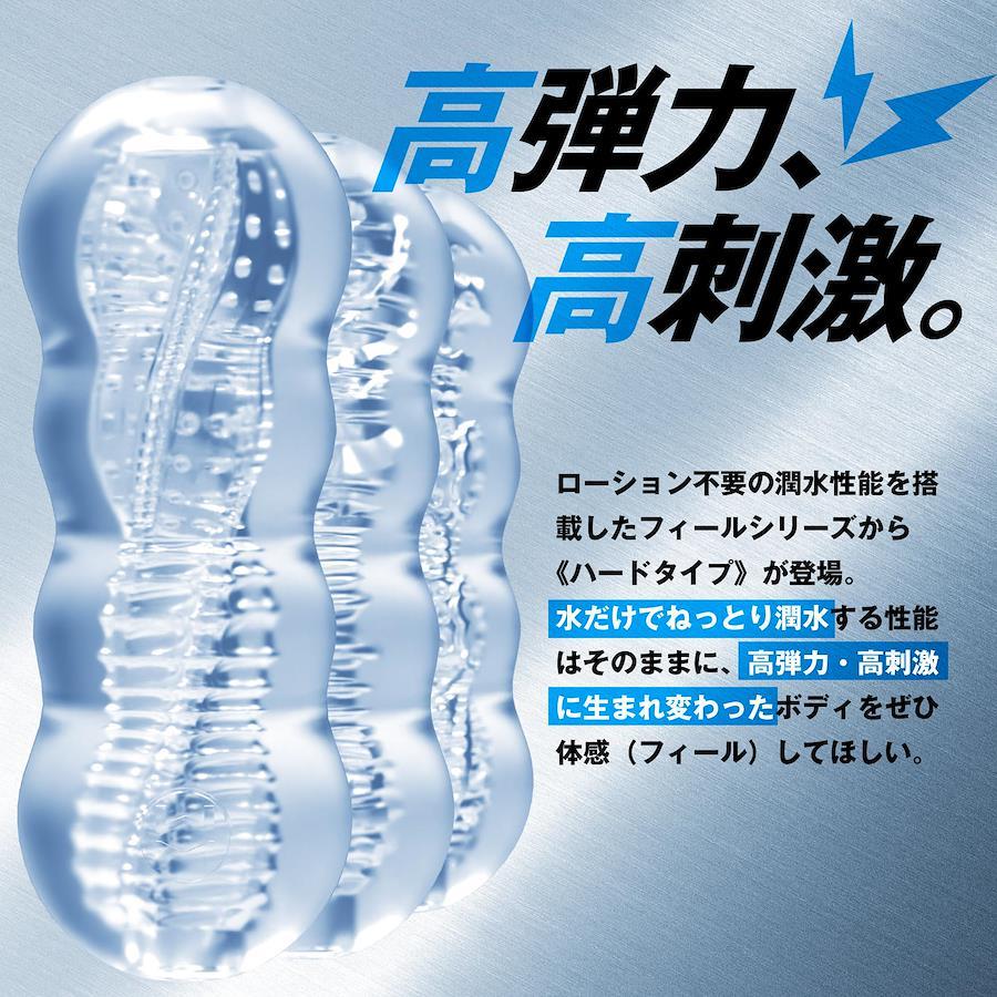 【はじける高弾力。ハードなフィール、誕生。】冴える刺激、弾ける触感。さらにくっきりした刺激。さらにパワフルな反発力。ハード素材による反発力で弾ける様な触感。ストロークするたびに手まで伝わる振動は圧巻。