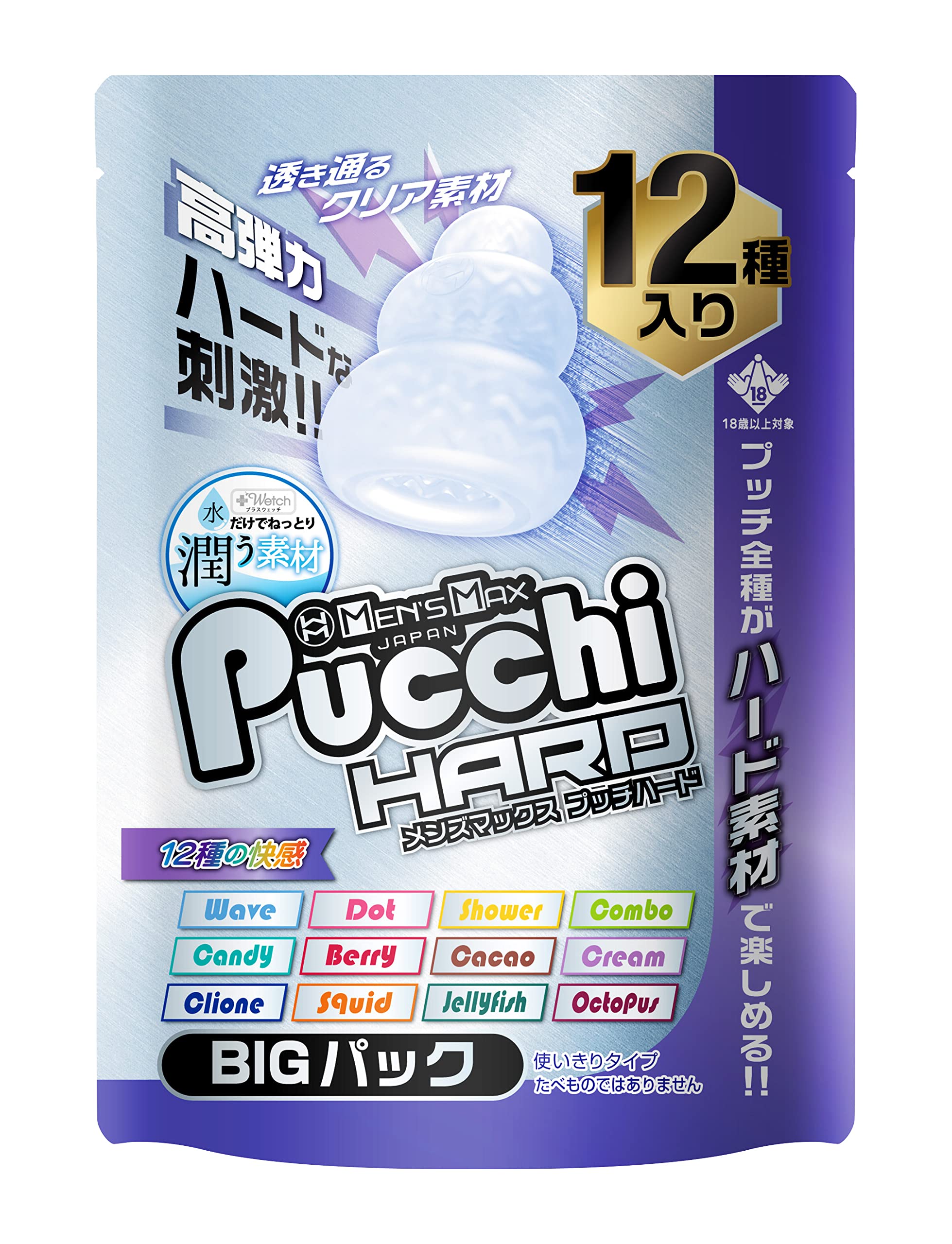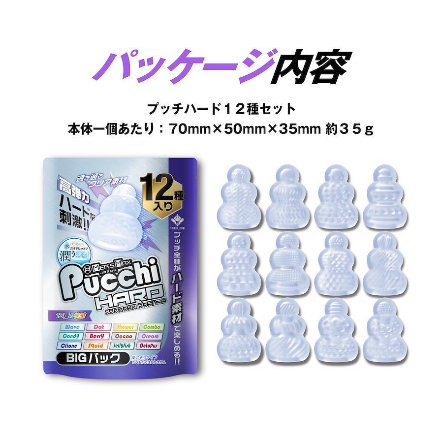 メンズマックスプッチハードが12種入ったセット商品です。【特許登録済独自素材を採用】プラスウェッチは独自開発の新素材。水をつけて軽く擦ることで、内部の超ミクロサイズで閉じ込められた「潤いゼリー」が水に反応し、沁みだし、樹脂表面をねっとりと潤い包みこみます。【デコボコ感、さらにクッキリ。】