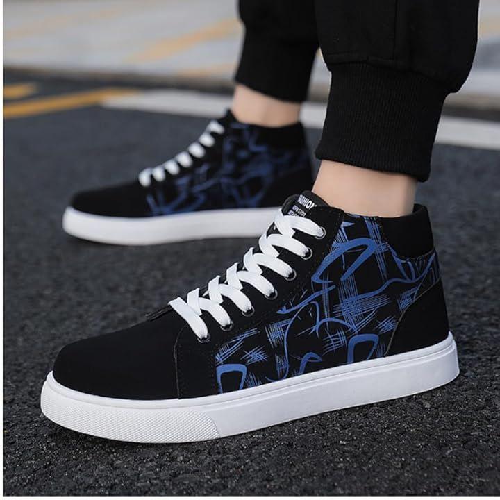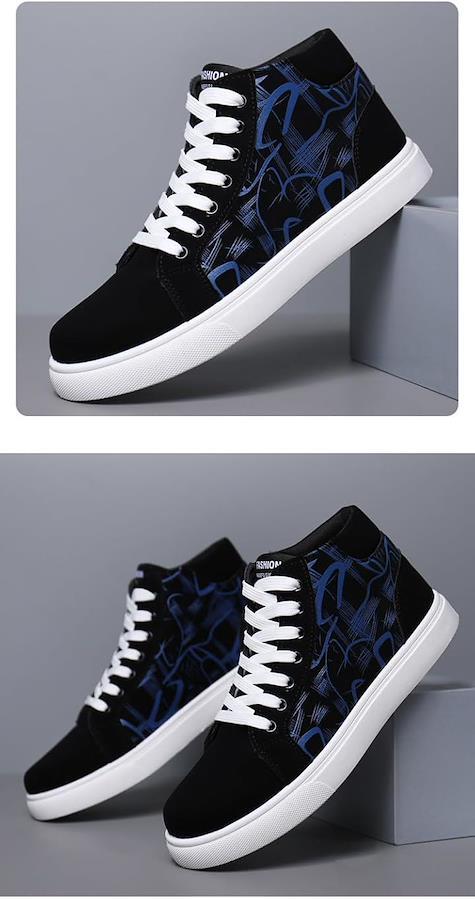 仕様1:印象的なグラフィックデザインが魅力のハイカットスニーカー:黒を基調としたアッパーに大胆なラインがあしらわれたハイカットスニーカーは、ストリート感あふれる存在感で足元からスタイルを引き立てます。