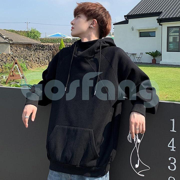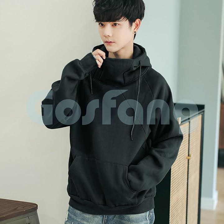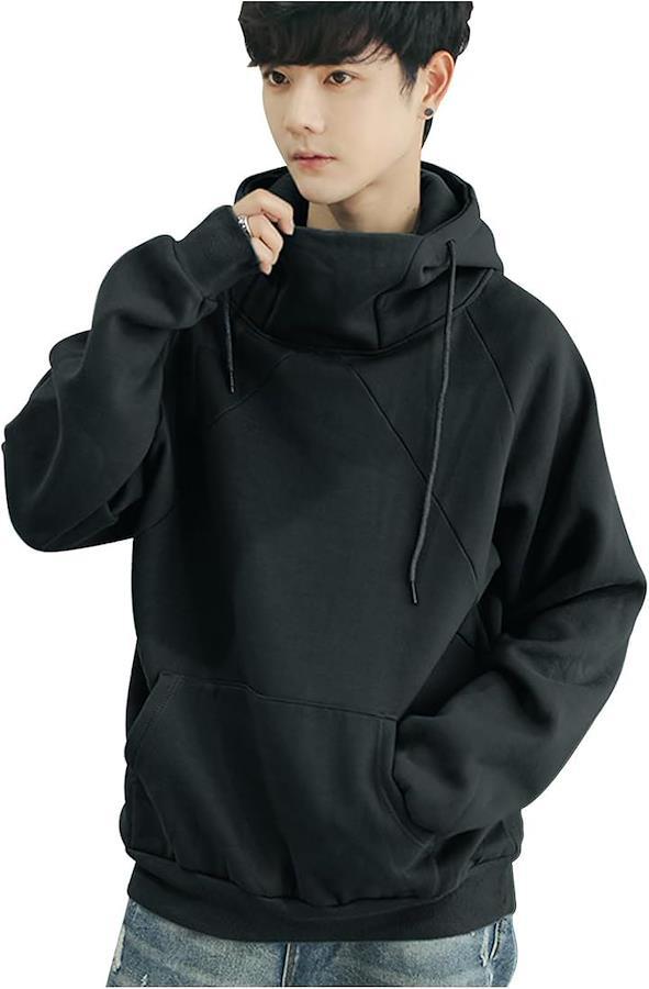 Men's hoodie, high neck, sweatshirt, pullover, sweatshirt, stylish, casual, top, with hood