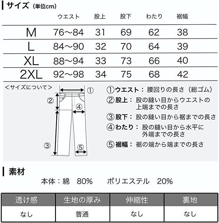 「2XL」ウエスト92~98 / 股上34 / 股下75 / わたり68 / 裾幅42