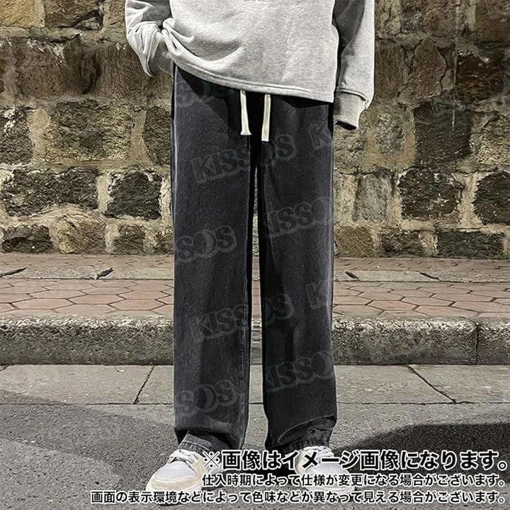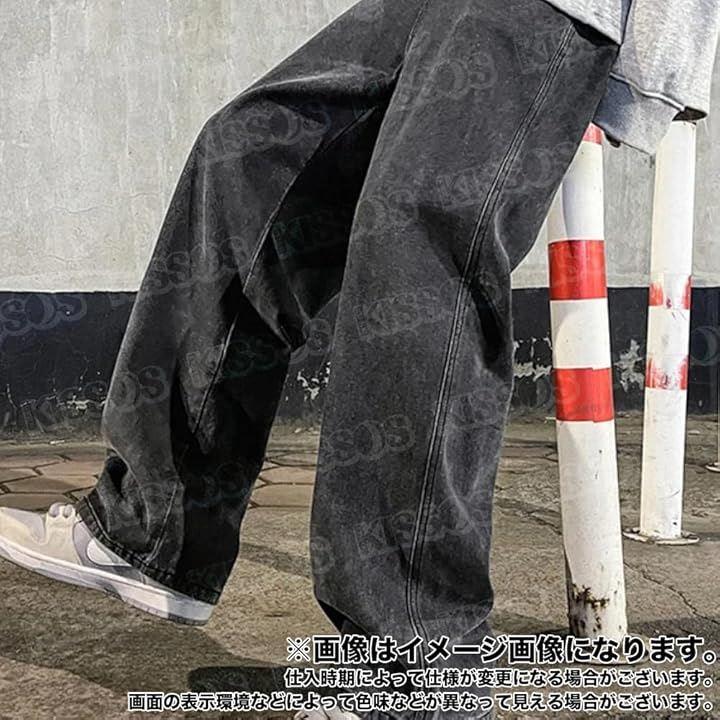 Men's Wide Denim Pants Jeans Straight Loose Fit Casual Relaxed Plain Stylish Street Fashion Korean JP Alphabet