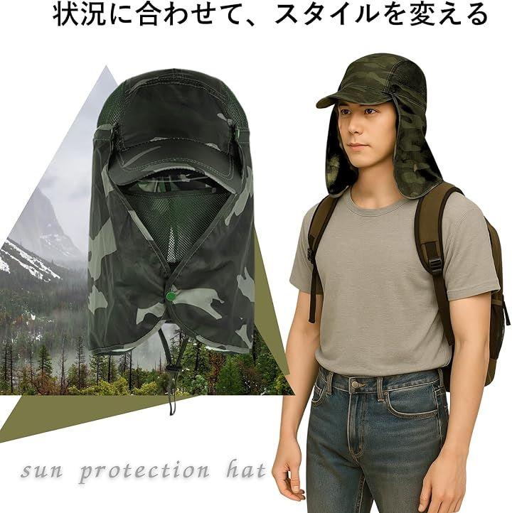 「UPF50+。メンズ日よけ帽子 紫外線防止 フェイスカバー付きキャップ」 屋外での活動を強力にサポートする、メンズ向けの日よけ帽子です。