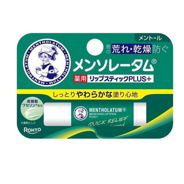 製品の特徴●ロート製薬 MENTHOLATUM メンソレータム 薬用リップスティックPLUS+(プラス)●塗り心地しっとりなのにべたつかない薬用リップクリーム。●唇をいたわりながら荒れ・乾燥を防ぐ薬用リップバーム。●しっとりやわらか、なのにべたつかない、唇のことを考え抜いた塗り心地。●高精製ワセリン(*)配合。[*ワセリン(基剤として)]●乾燥などの外部刺激から唇を守ります。●おやすみ前や唇が荒れているときの口紅の下地にも。●爽快感を与えるメントールタイプ。●医薬部外品●販売名:メンソレータムR薬用リップMa