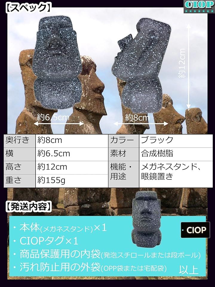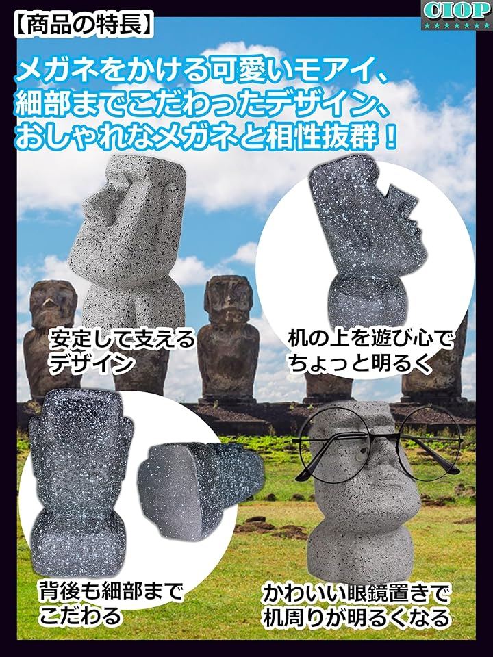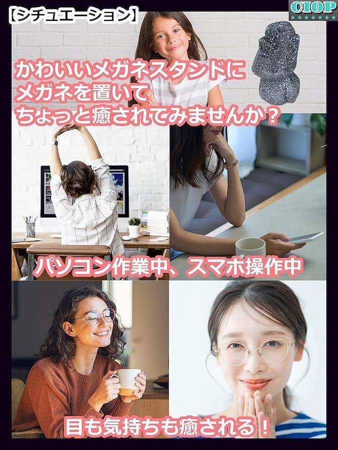 「ユニークなデザイン」:優しくコミカルで かわいい モアイ があなたのメガネを顔でがんばってやさしく支えてくれます。